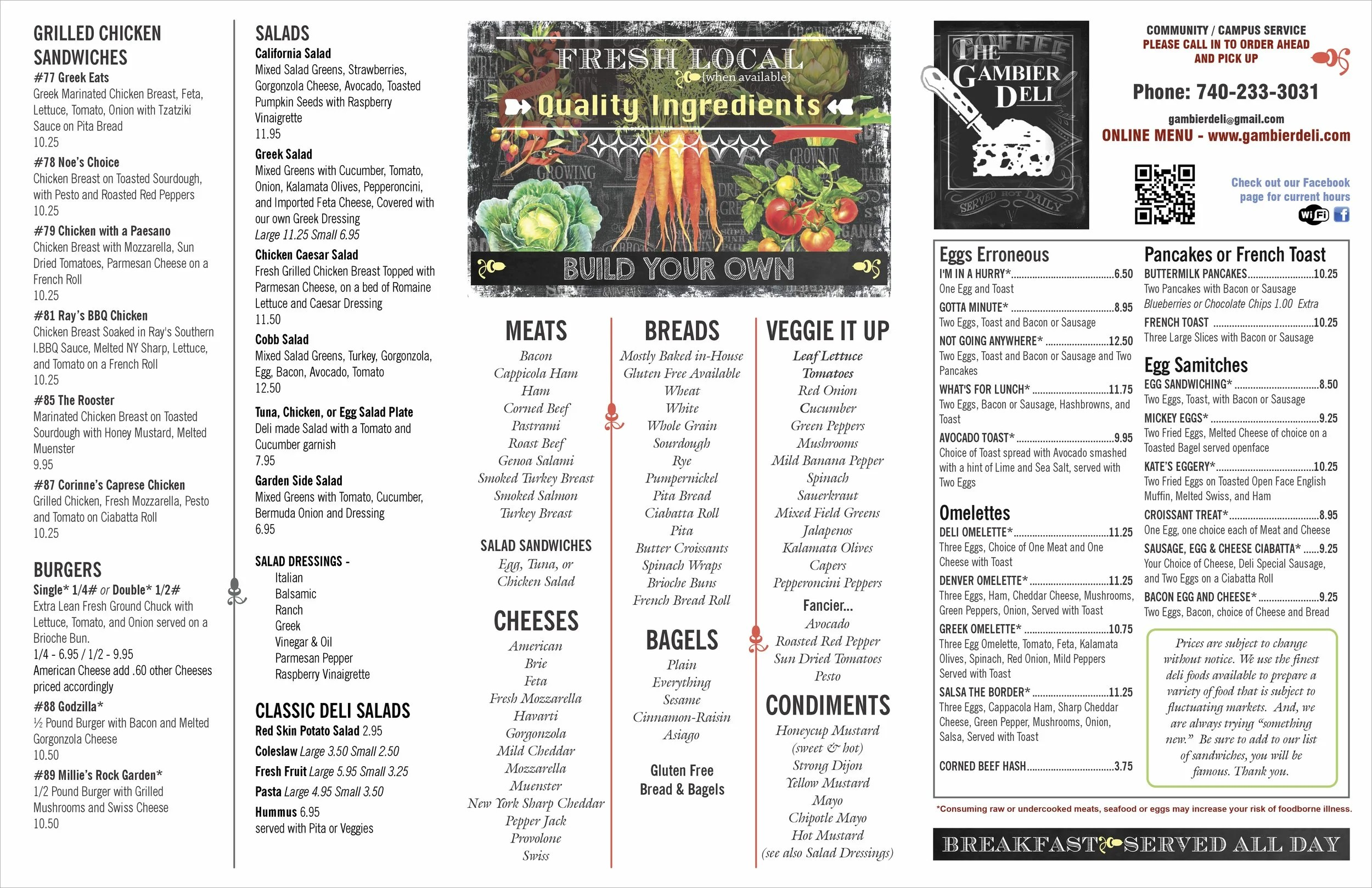 Fresh Ingredients.Local Flavor. Welcome to The Gambier Deli, where community and quality meet. Get Started Our Menu